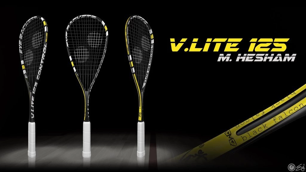 The Eye V.Lite 125 Control features plenty of control with its smaller 477 cm2 and denser fan-out string pattern. The V.Lite 125 features a thicker shaft than most of the other Eye racquets and has a fairly stiff feel to it. Even though it is a smaller head it has enough mass to help generate pace while stiff offering excellent control. It is a very stylish racquet and is the racquet of choice of the “Black Falcon”, Mazen Hesham.