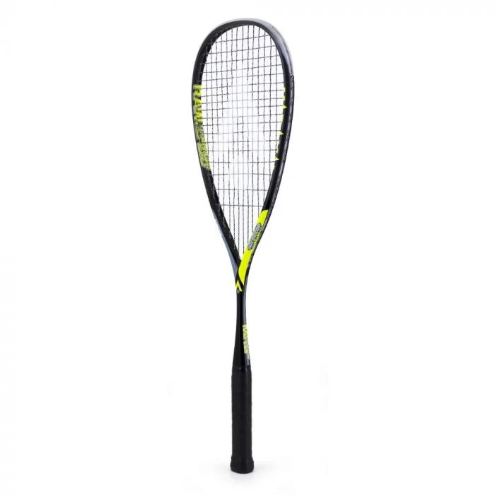 The Karakal Raw 120 Squash Racket is the lighter of the 2 Raw frames has black and yellow artwork and a smooth satin finish with minimal paint to help keep the racket weight down.