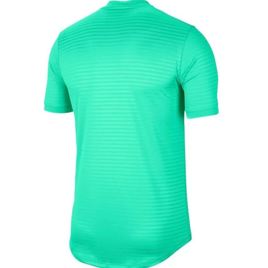 The t-shirt is made from a stretchy, breathable, 100% polyester material and features matt stripes combined with Nike’s renowned Dri-FIT Technology which moves sweat from your skin to speed up evaporation and help you stay dry and comfy.