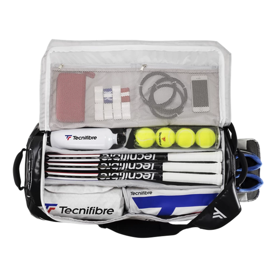 Created with a durable, waterproof tarpaulin material that reduces the risk of tears, Tecnifibre has really gone all out with this one. This Large Rackpack is slightly smaller than the XL version and it has a removable rack that can be inserted to create five separate compartments to organise all of your gear (visible in the second image), or, you can remove the rack to access maximum capacity and use this innovative bag as a huge travel bag.