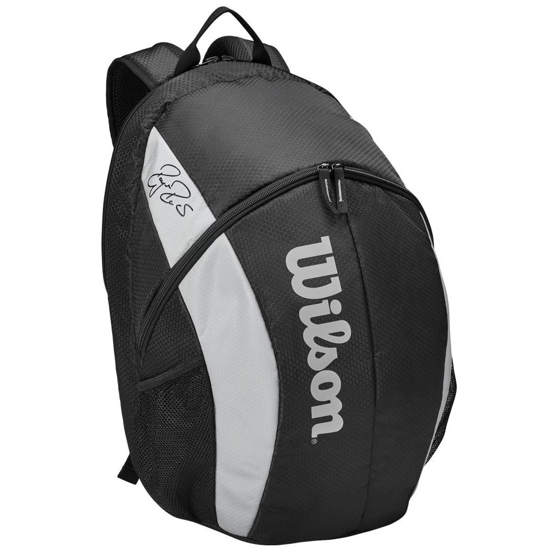 Alongside the mesh pockets for your water bottles, the exterior of the RF Team Backpack has a slick, grey screen print Wilson logo and Roger Federer’s iconic signature printed on the front.